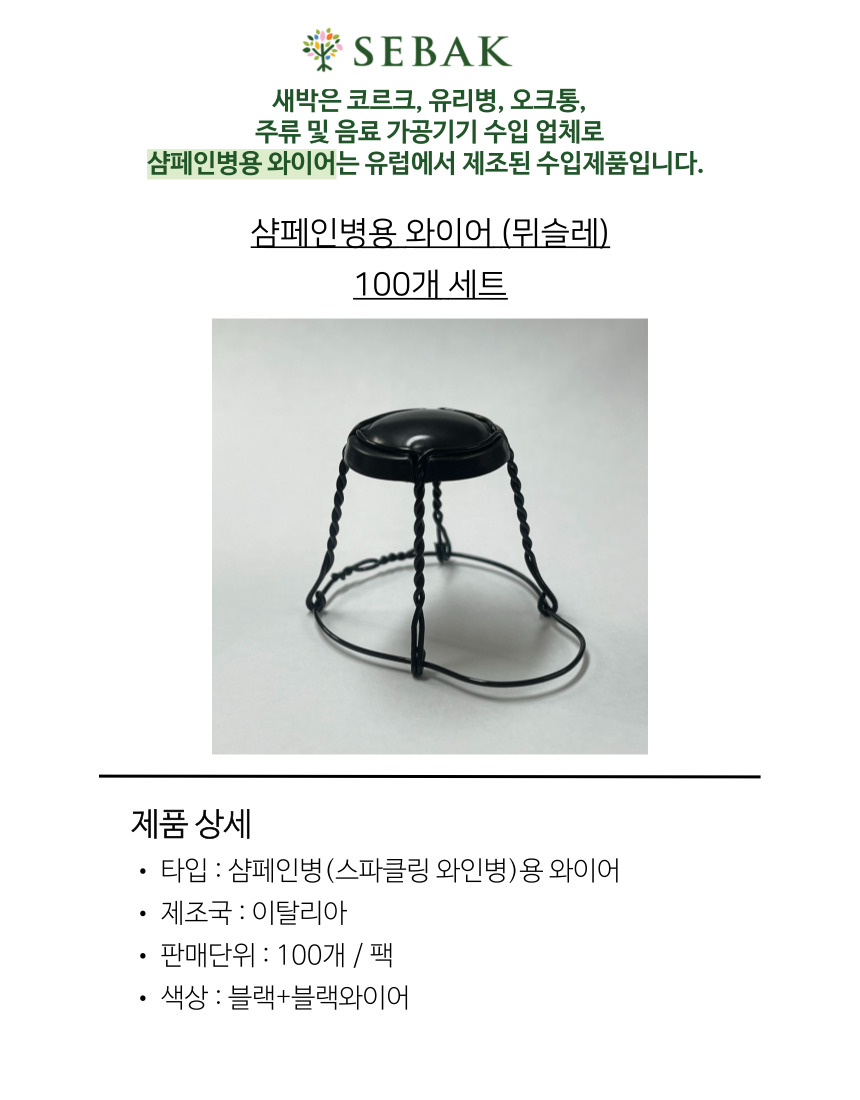 > 샴페인병용 와이어 뮈슬레 블랙+블랙와이어 100개